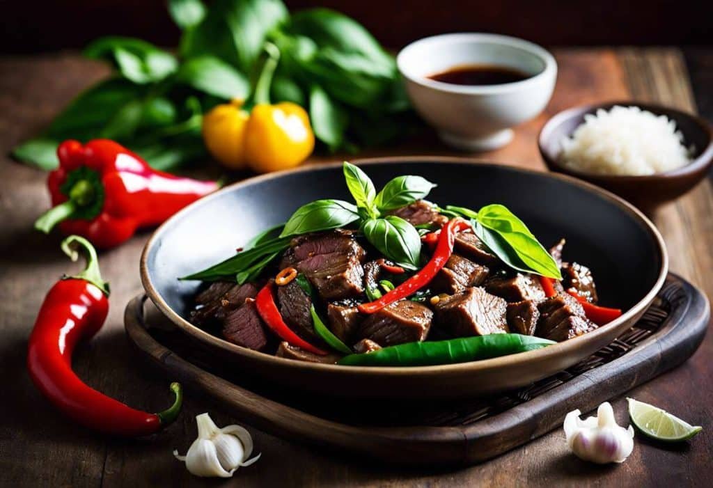 Produit précédent Produit suivant Bol Renversé au Boeuf Basilic 14,00 € Boeuf, oignon, poivron, ail, basilic, piment, oeuf, accompagné de riz nature et soupe miso. quantité de Bol Renversé au Boeuf Basilic Ajouter à ma commande UGS : bol-renverse-au-boeuf-basilic Catégorie : Les Plats du jour de Bibi Produits similaires Vue rapide Vue rapide Les Plats du jour de BibiRamen Sec au Poulet Halal 14,00 € Ajouter à ma commande Vue rapide Vue rapide Les Plats du jour de BibiCrevettes à la Sauce Piquante 15,00 € Ajouter à ma commande